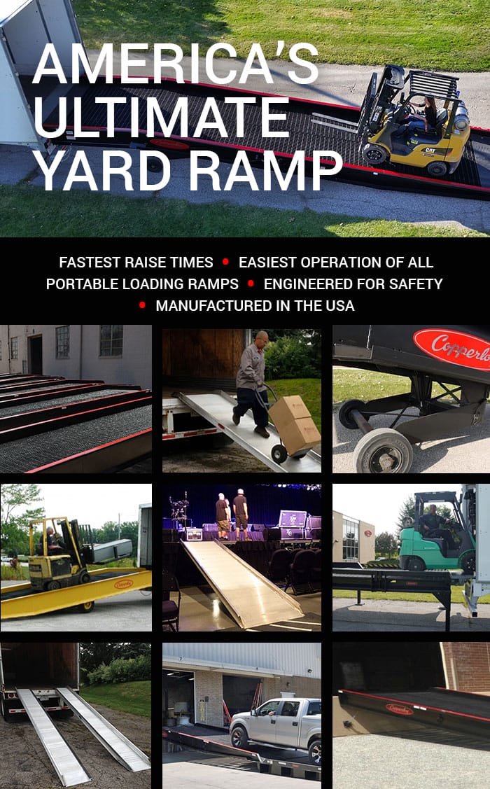 Copperloy are the preferred yard ramps of dock crews offering the fastest raise times and easiest operation of all the portable loading ramps available today. Our yard ramps allow you to create a portable loading dock anywhere and efficiently load/unload semi-trucks and shipping containers. Proudly manufactured in the USA, Copperloy Loading Dock Ramps are engineered for safety while Improving Production. We offer a full range of mobile ramps, truck ramps and rental ramps. Click on a link below for the specific type of ramp you are looking to rent or purchase for your unique projects.